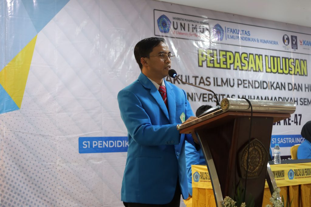 Dekan FIPH Unimus, Dr. Dodi Mulyadi, M.Pd., dalam sambutannya menyampaikan apresiasiatas capaian akademik para lulusan yang dinilai semakin menunjukkan performa positif. “Mahasiswa tidak berjuang sendiri dalam meraih keberhasilan pendidikan ini. Ada doa dan dukungan orang tua, dosen, serta tenaga kependidikan. Kami bangga karena sebagian besarlulusan FIPH mampu lulus tepat waktu, bahkan 94% lulusan meraih predikat cumlaude. Ini buktinyata bahwa pendidikan di FIPH berkualitas,” ujarnya. “Semoga ilmu yang telah diperoleh dapatmenjadi bekal berharga untuk berjuang dan berkarya di tengah masyarakat,” ungkapnya.